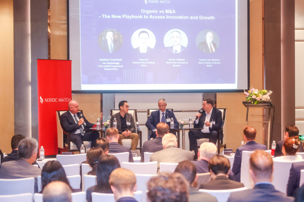 The seminar followed by a highly dynamic panel discussion, “Organic vs M&A – The New Playbook to Access Innovation and Growth,” with Matthias Tschermak von Seysenegg (CFO, NOK-Freudenberg China), Sean He (Partner, Novo Holdings China), and Olivier Pelletier (SVP, Munters APAC) sharing perspectives on adapting strategies, evaluating innovation-driven opportunities, and aligning operations with growth ambitions. Gerard van Damme, Senior Advisor at Nordic Match, moderated the session.